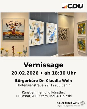 Vom 17. Februar bis zum 3. April 2026 präsentierten wir in unserem Bürgerbüro ausgewählte Werke der Berliner Künstler*innen H. Pastor, A.R. Stern sowie von Oliver Lipinski.